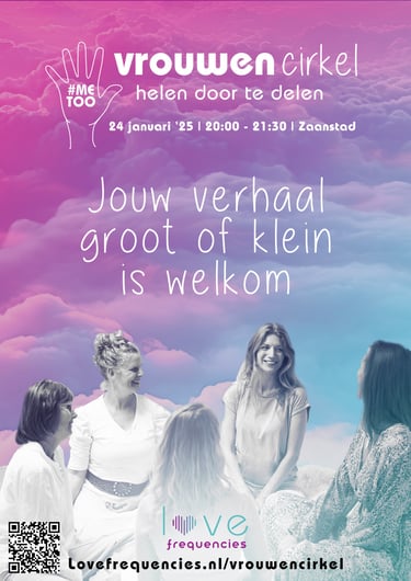 Lieve vrouw, je kan je hieronder inschrijven voor de vrouwencirkel op vrijdag 24 januari 2025 in Zaanstad. Deze avond tussen 20.00 en 21.30 uur delen we onze #metoo ervaringen. Verhalen die vaak niet echt gehoord of verteld zijn. Deze avond creëren we een veilige, warme ruimte waarin we onszelf kunnen zijn. We laten ego en oordeel thuis en dragen samen de kracht van verbinding en heling.